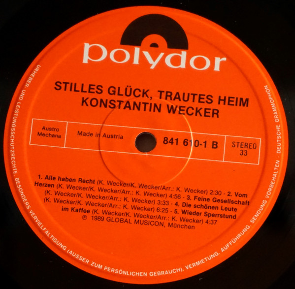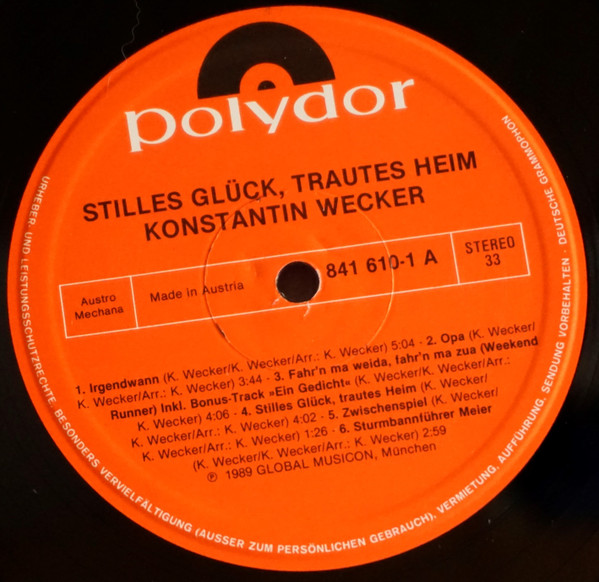 Vinyl / Konstantin Wecker - Stilles Glück, Trautes Heim