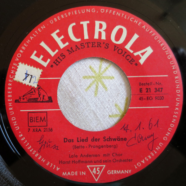 Vinyl / Lale Andersen - Au Revoir Marcel / Das Lied Der Schwäne