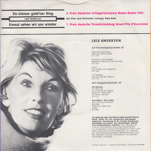 Vinyl / Lale Andersen - Ein Kleiner Gold'ner Ring / Einmal Sehen Wir Uns Wieder