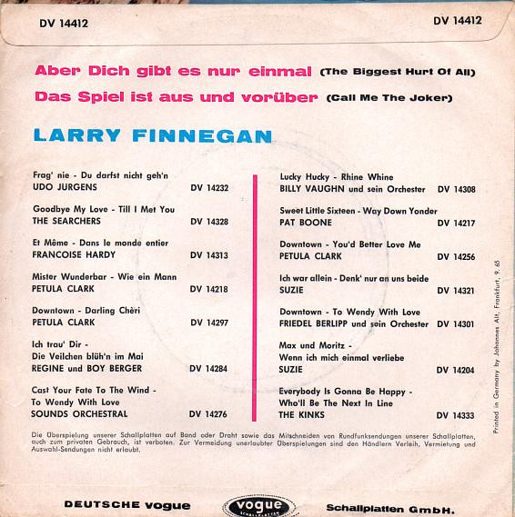 Vinyl / Larry Finnegan - Aber Dich Gibt Es Nur Einmal (The Biggest Hurt Of All)