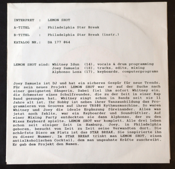 Vinyl / Lemon Shot - Philadelphia Star Break / Philadelphia Star Break (Instr.)