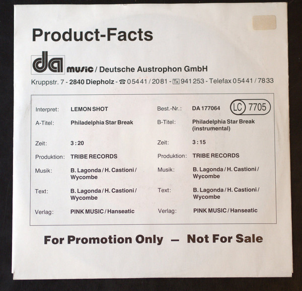 Vinyl / Lemon Shot - Philadelphia Star Break / Philadelphia Star Break (Instr.)