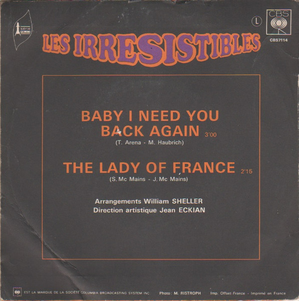 Vinyl / Les Irrésistibles - Baby I Need You Back Again / The Lady Of France