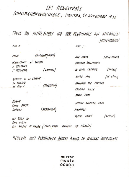 Label: Mirror Music (2) - Cat#: 00003
