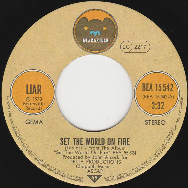 Vinyl / Liar (3) - Set The World On Fire