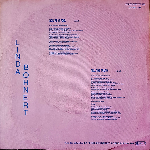 Vinyl / Linda Bohnert - You're A Fool