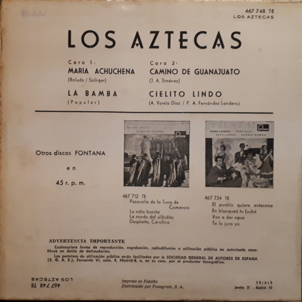 Vinyl / Los Aztecas - María Achuchena / La Bamba / Camino De Guanajuato / Cileito Lindo
