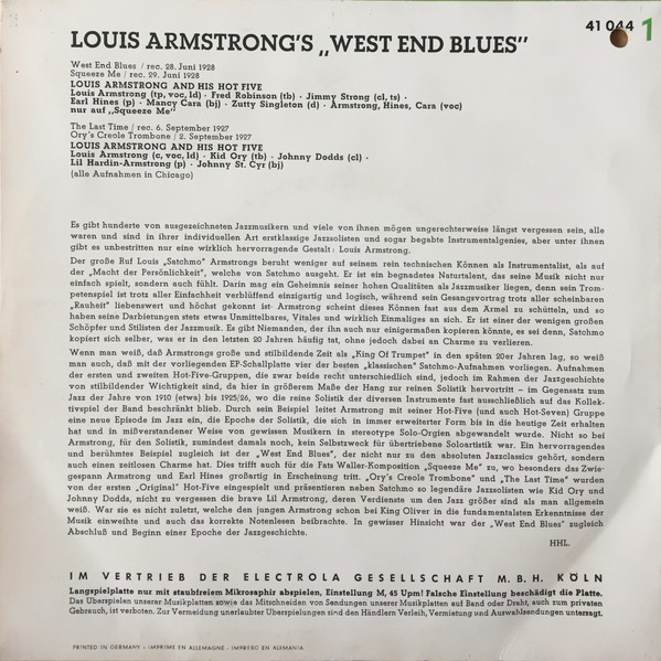 Vinyl / Louis Armstrong And His Hot Five* - Louis Armstrong's "West End Blues"