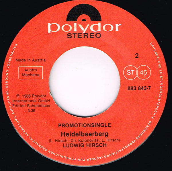 Vinyl / Ludwig Hirsch - Die Gelse / Heidelbeerberg