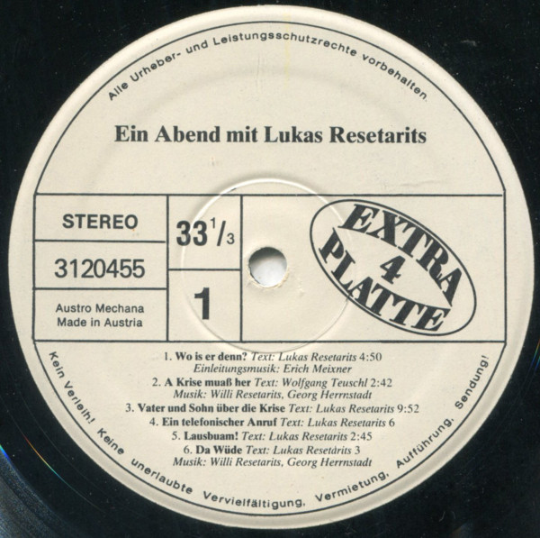Vinyl / Lukas Resetarits - Ein Abend Mit Lukas Resetarits