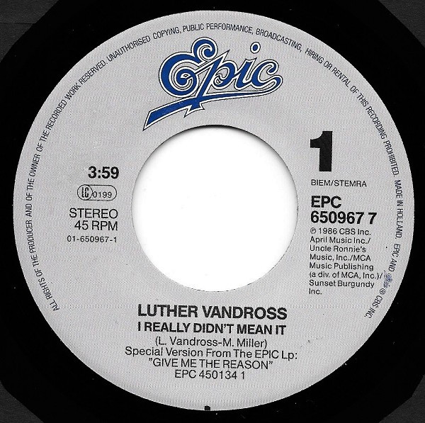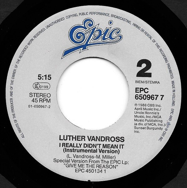 Vinyl / Luther Vandross - I Really Didn't Mean It