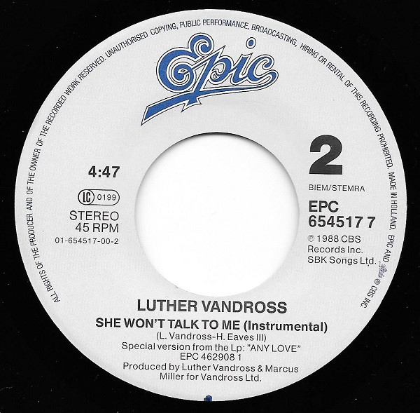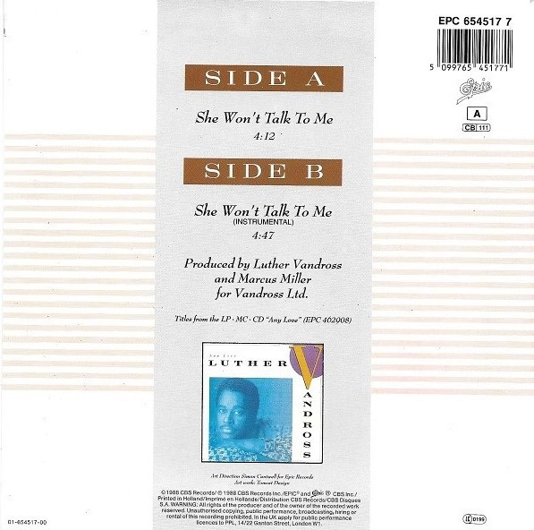 Vinyl / Luther Vandross - She Won't Talk To Me