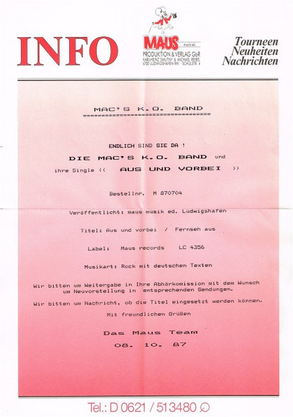 Vinyl / Mac's K.O. Band - Aus Und Vorbei