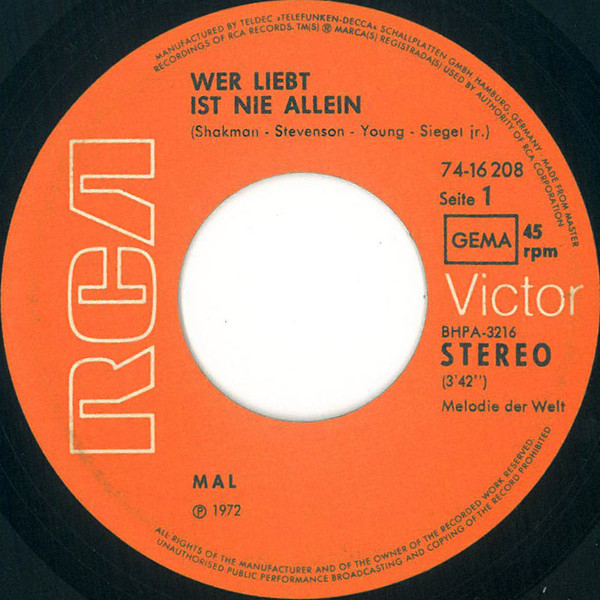 Vinyl / Mal - Wer Liebt Ist Nie Allein / Weit Ist Der Weg Nach Jerusalem