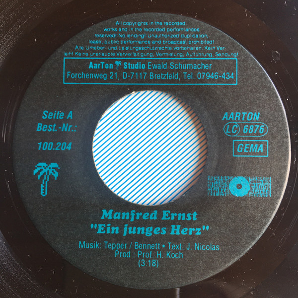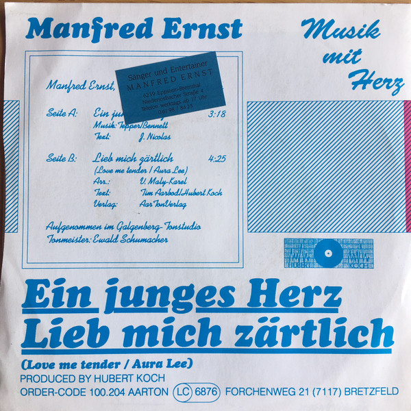 Vinyl / Manfred Ernst - Ein Junges Herz / Lieb Mich Zärtlich