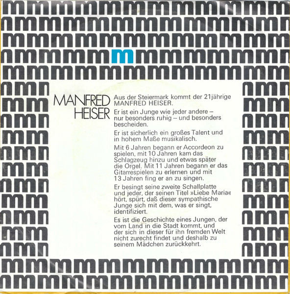Vinyl / Manfred Heiser - Liebe Maria / Willst Du Mit Mir Tanzen