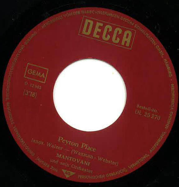 Vinyl / Mantovani And His Orchestra - Peyton Place