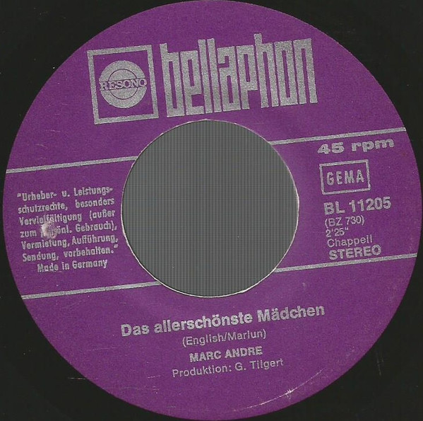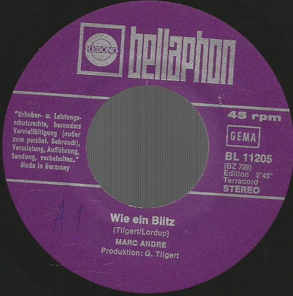 Vinyl / Marc André - Wie Ein Blitz / Das Allerschönste Mädchen