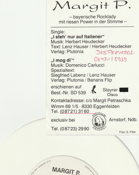Vinyl / Margit P. - I' Steh' Nur Auf Italiener