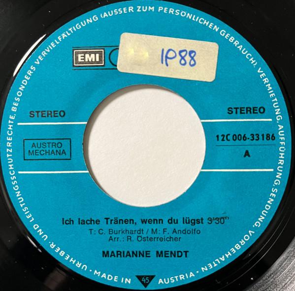 Vinyl / Marianne Mendt - Ich Lache Tränen, Wenn Du Lügst