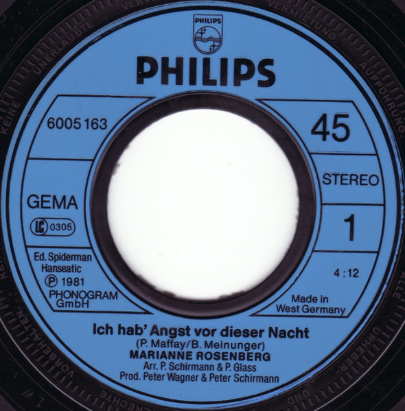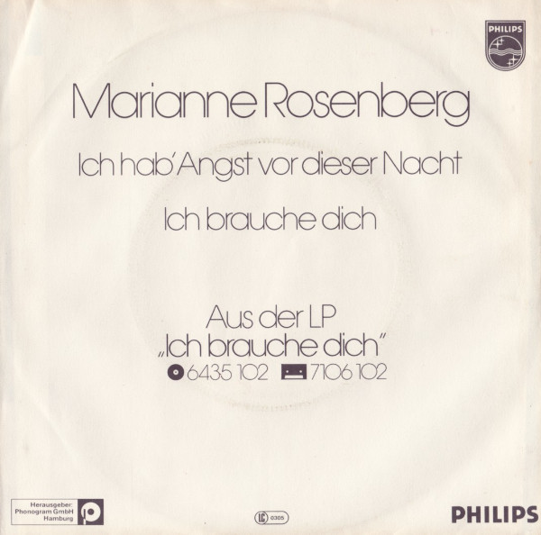 Vinyl / Marianne Rosenberg - Ich Hab' Angst Vor Dieser Nacht / Ich Brauche Dich