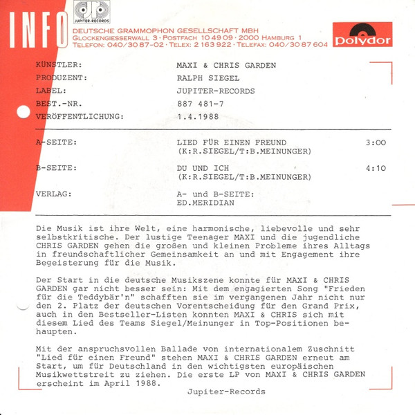 Vinyl / Maxi & Chris Garden - Lied Für Einen Freund