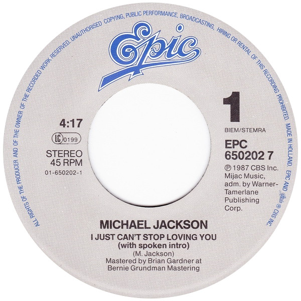 Vinyl / Michael Jackson - I Just Can't Stop Loving You