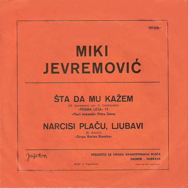Vinyl / Miki Jevremović - Šta Da Mu Kažem / Narcisi Plaču Ljubavi