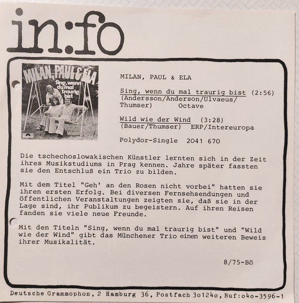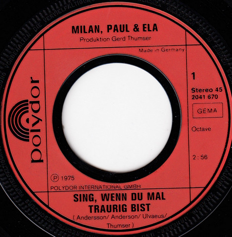 Vinyl / Milan, Paul & Ela - Sing, Wenn Du Mal Traurig Bist