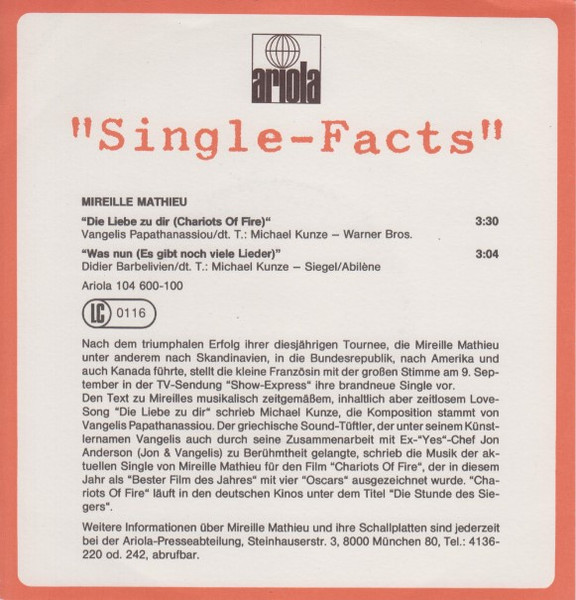 Vinyl / Mireille Mathieu - Die Liebe Zu Dir (Chariots Of Fire)