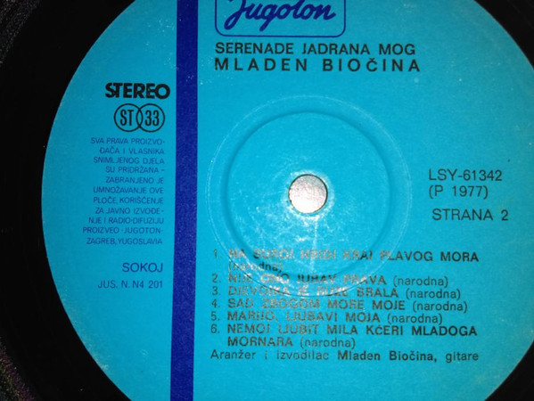 Vinyl / Mladen Biočina - Serenade Jadrana Mog
