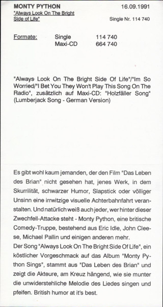 Vinyl / Monty Python - Always Look On The Bright Side Of Life...