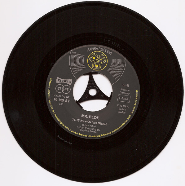 Vinyl / Mr. Bloe - 71-75 New Oxford Street / Get Out Of This Town