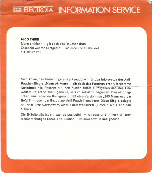 Vinyl / Nico Thien - Mann, Oh Mann - Gib Doch Das Rauchen Dran