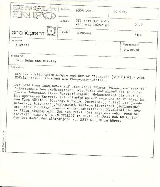 Vinyl / Novalis (3) - Oft Sagt Man Mehr, Wenn Man Schweigt