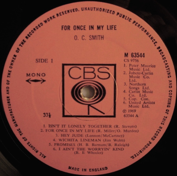 Vinyl / O. C. Smith* - For Once In My Life
