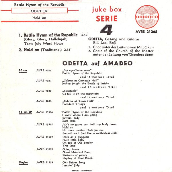 Vinyl / Odetta - Battle Hymn Of The Republic (Glory, Glory, Hallelujah) / Hold On (Traditional)