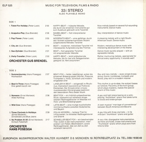 Label: Europhon Record - Cat#: ELP 525