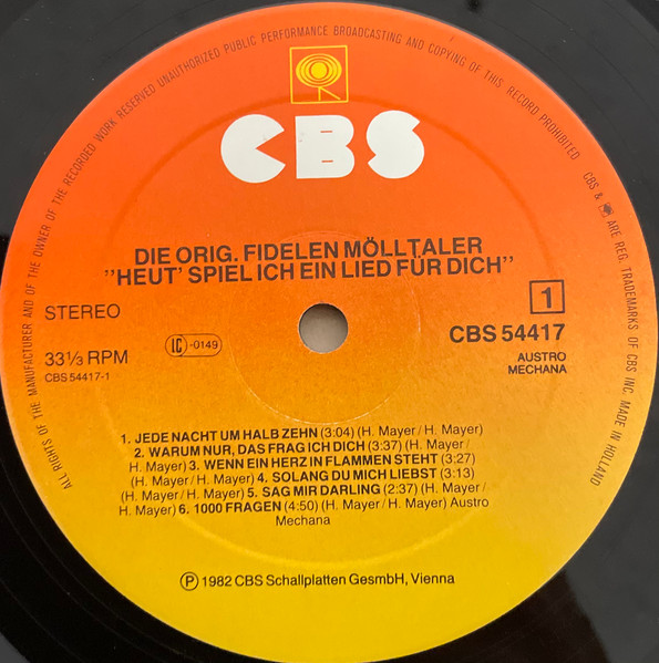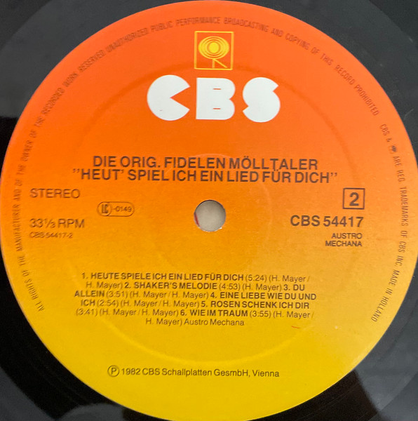 Vinyl / Orig. Fidele Mölltaler* - Heute Spiele Ich Ein Lied Für Dich