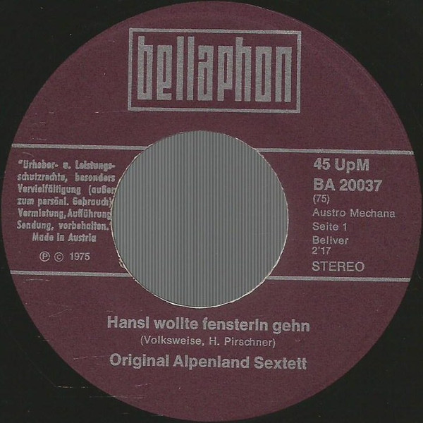 Vinyl / Original Alpenland Sextett - Hansl Wollte Fensterln Gehn