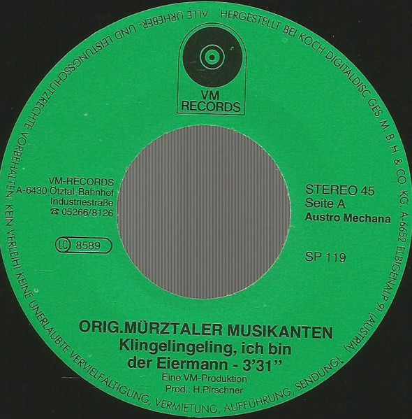 Vinyl / Original Mürztaler Musikanten* - Klingelingeling, Ich Bin Der Eiermann