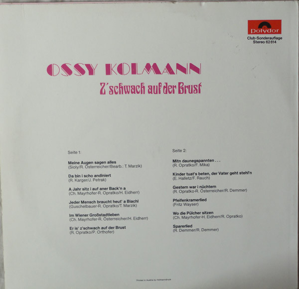 Vinyl / Ossy Kolmann - Er Is' Z'schwach Auf Der Brust