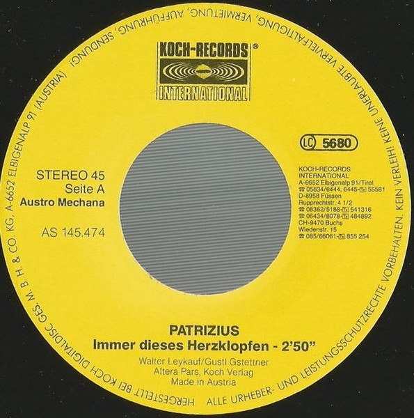 Vinyl / Patrizius - Immer Dieses Herzklopfen