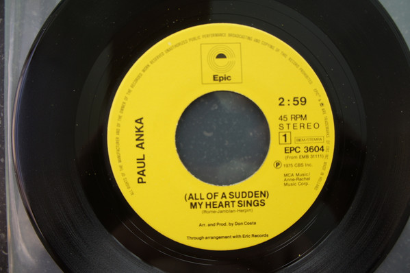 Vinyl / Paul Anka - (All Of A Sudden) My Heart Sings