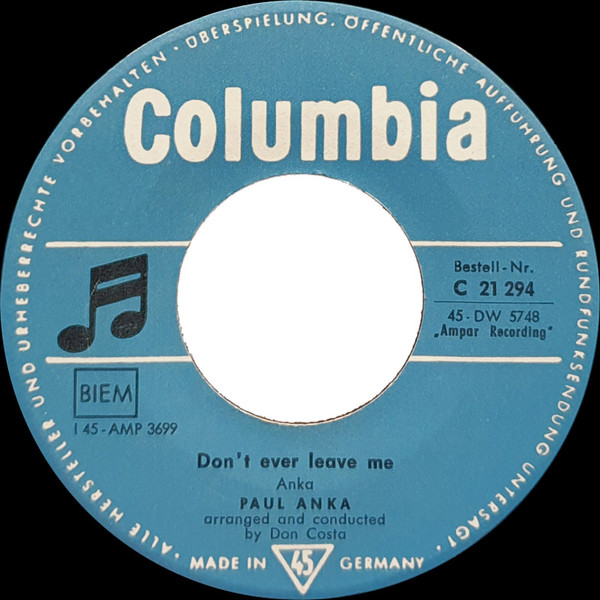 Vinyl / Paul Anka - Put Your Head On My Shoulder / Don't Ever Leave Me