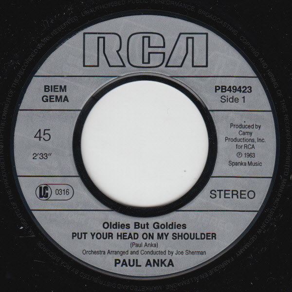 Vinyl / Paul Anka - Put Your Head On My Shoulder / You Are My Destiny