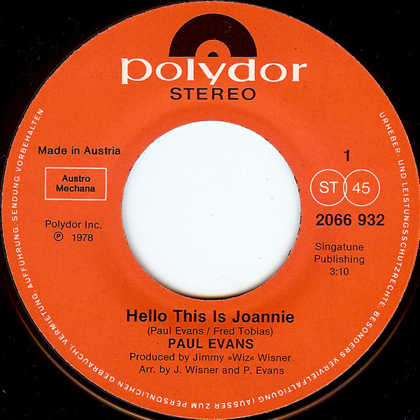 Vinyl / Paul Evans - Hello This Is Joannie