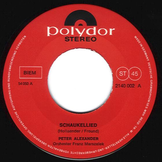 Vinyl / Peter Alexander - Schaukellied / Verliebte Muß Man Gar Nicht Erst In Stimmung Bringen