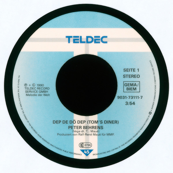 Vinyl / Peter Behrens - Dep De Dö Dep (Tom's Diner)