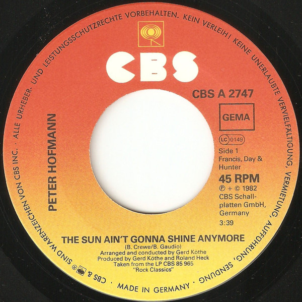 Vinyl / Peter Hofmann - The Sun Ain't Gonna Shine Anymore